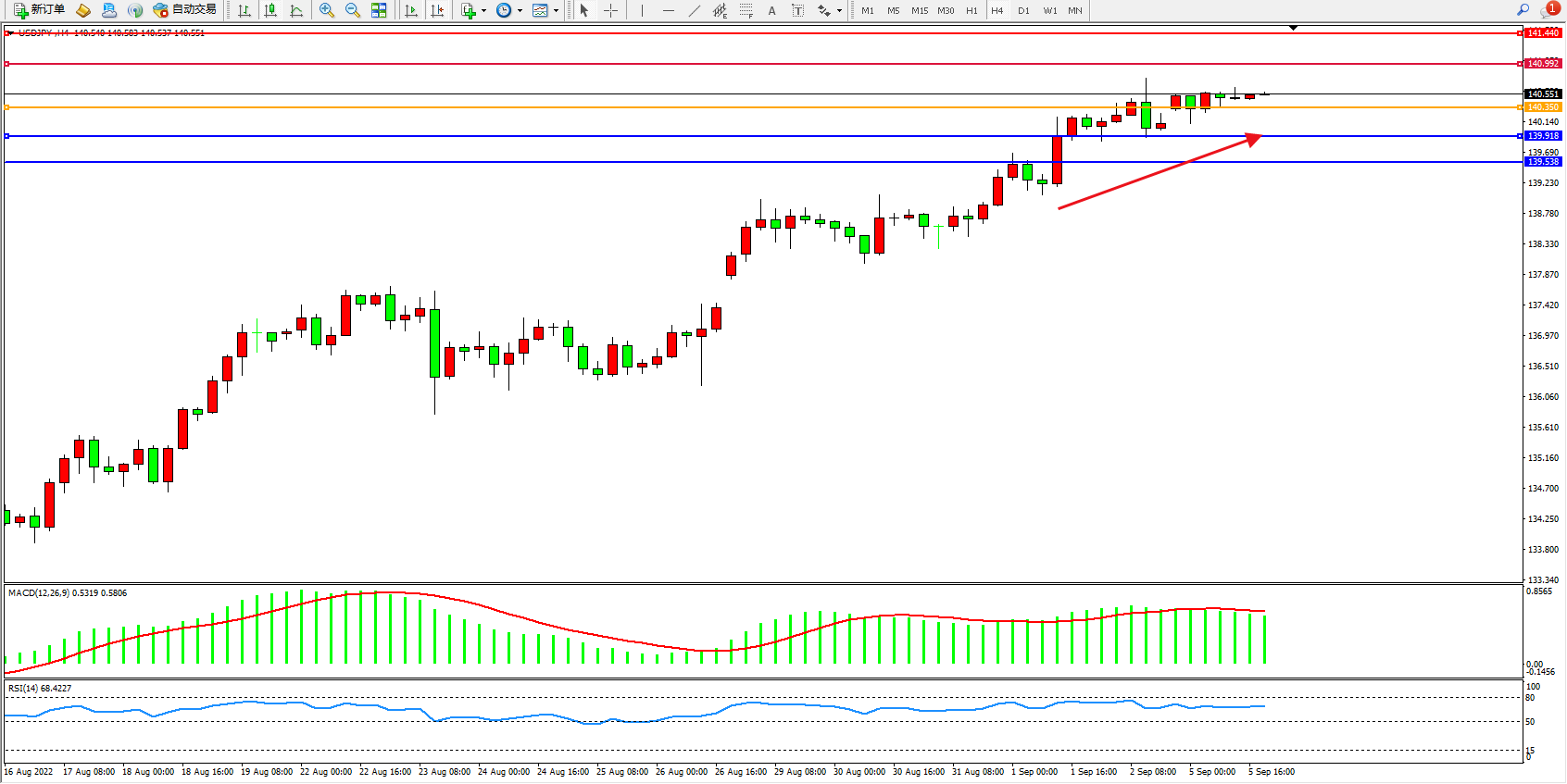 交易策略:140.350上方看涨,目标140.992、141.440