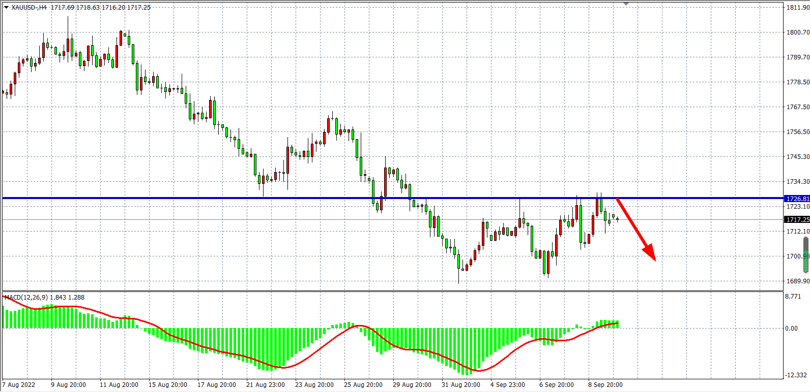 备选策略:在1727.00之下看跌,目标1706.00 1690.00
