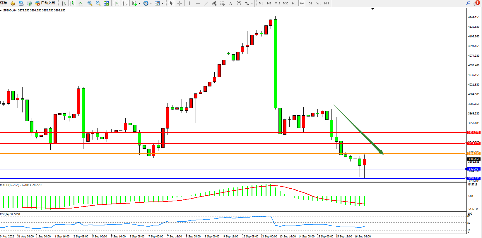 标普SP500——4小时K线图显示: