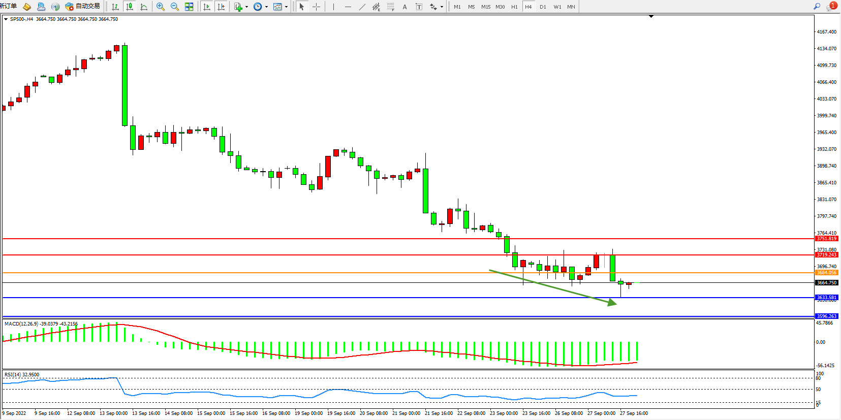 标普SP500——4小时K线图显示: