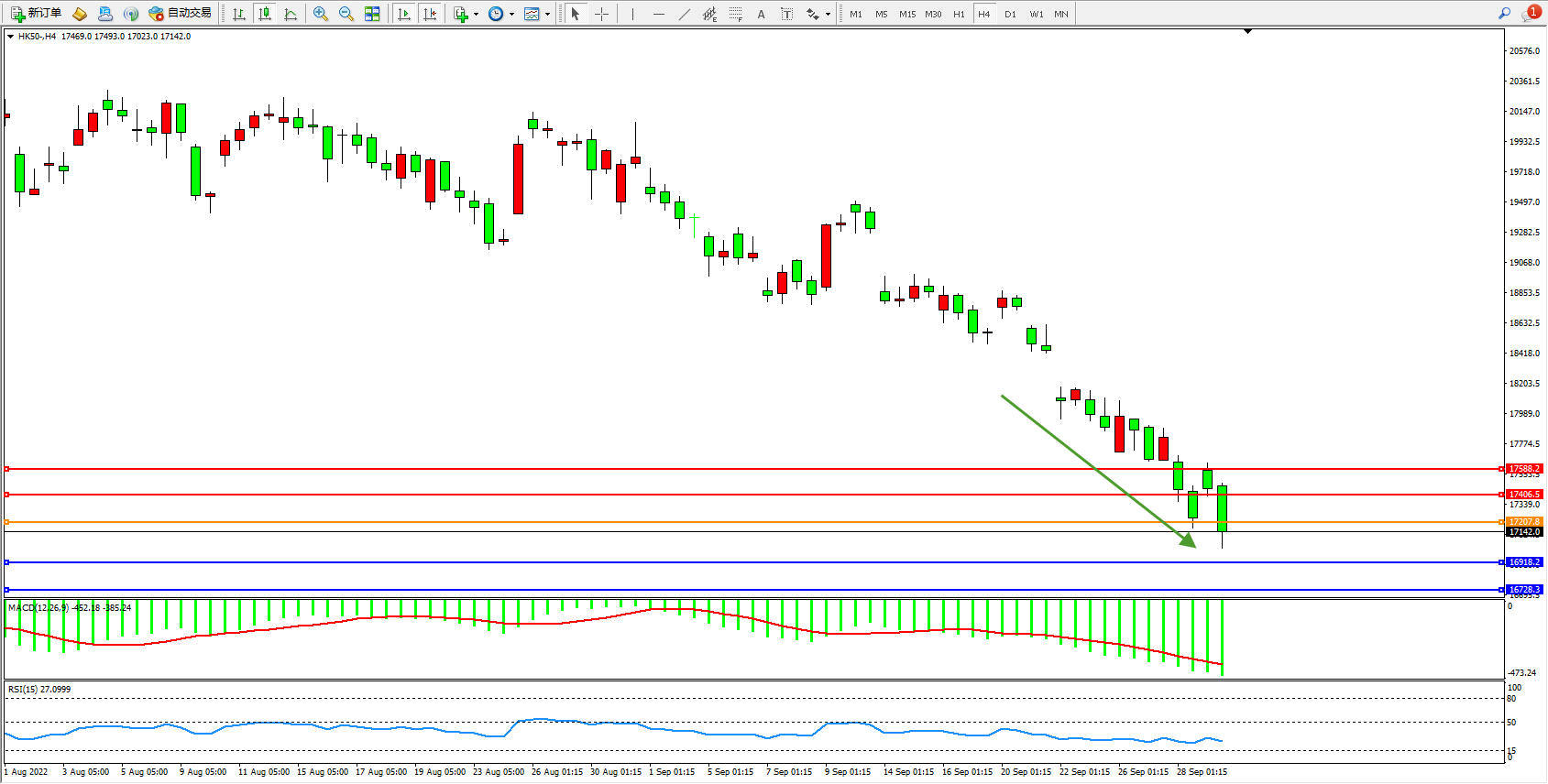 恒指HK50 4小时图