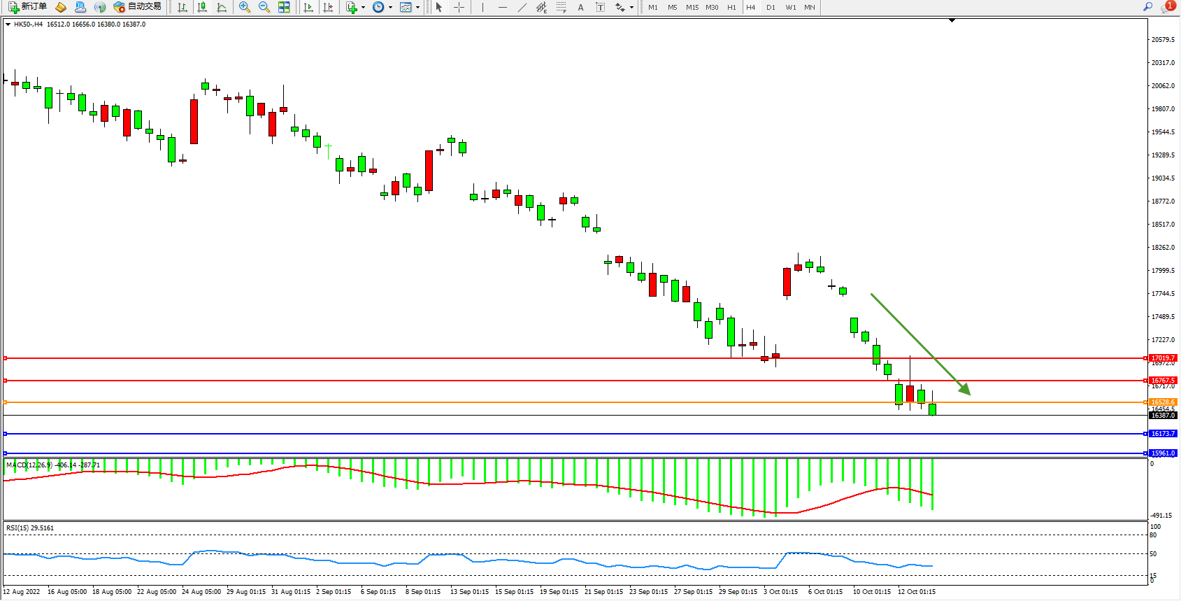 恒指HK50 4小时图
