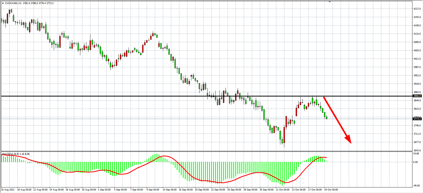 1小时图看,沪深300反弹至3860附近出现受阻,二次确认压力,回落同时跌破3780支撑,短线趋势偏弱,同时MACD于零轴之上出现急剧缩量,行情方向或面临选择, 日内在3860之下有回调需求,下方看3740-3660。