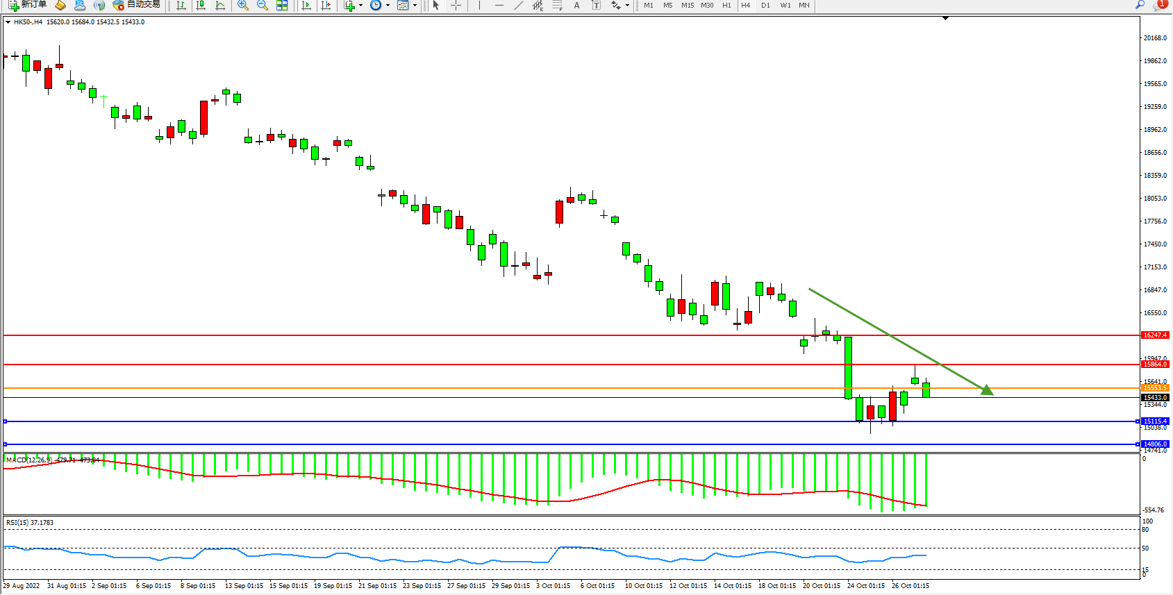 恒指HK50 4小时图