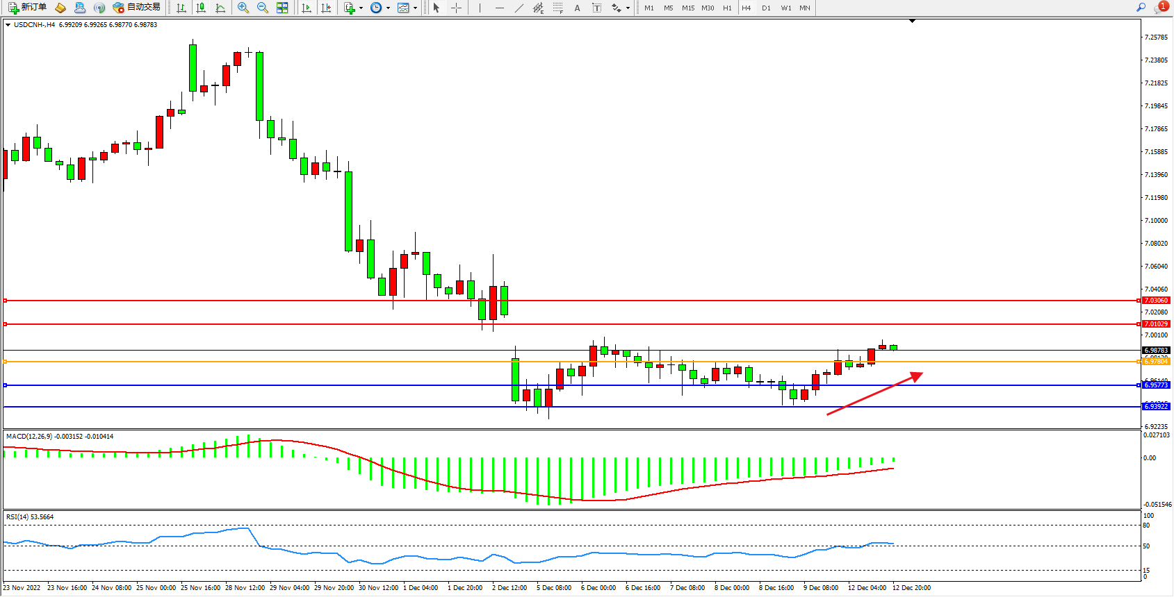 交易策略:6.97804上方看涨,目标7.01029、7.03060
