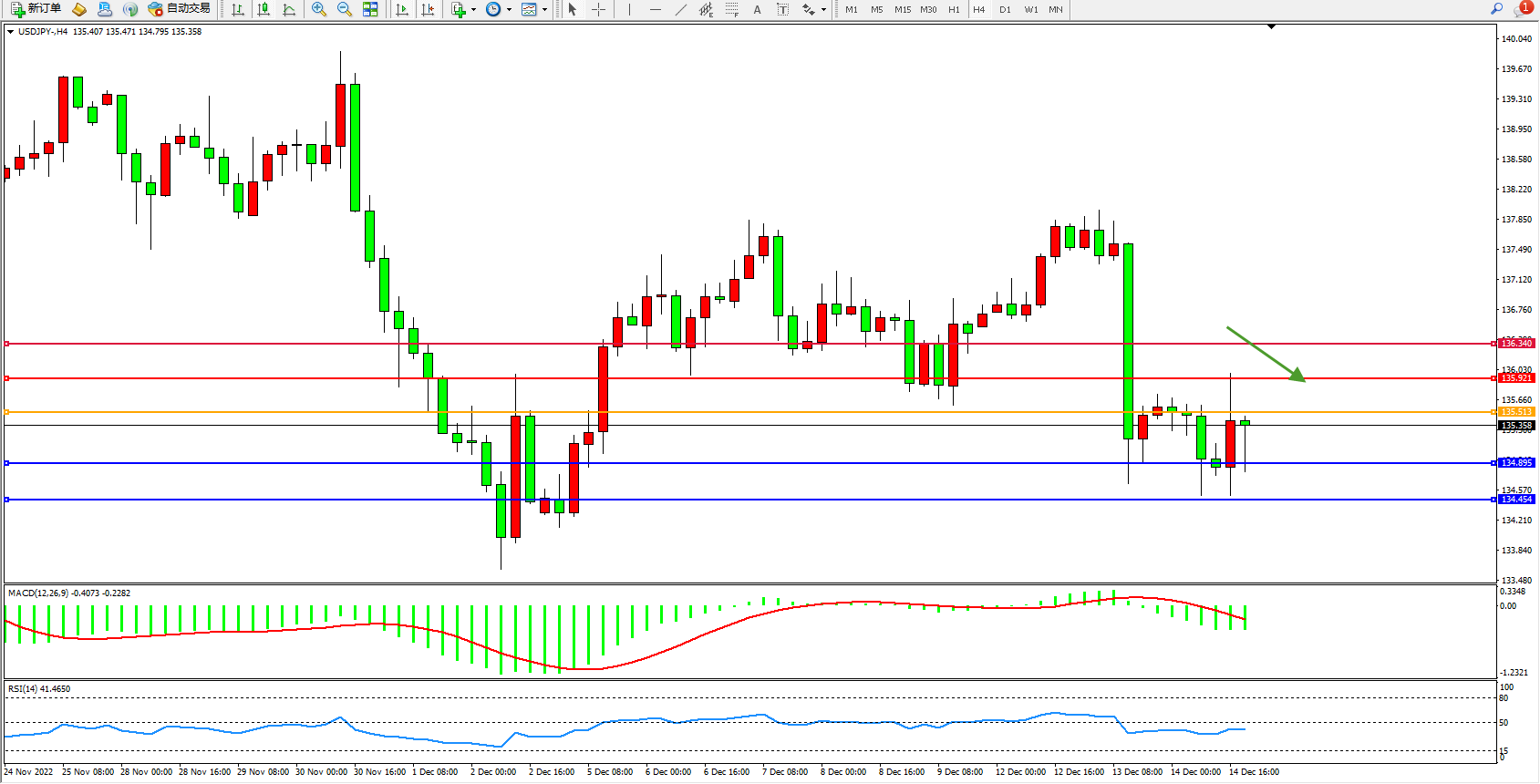 交易策略:135.513下方看跌,目标134.895、134.454