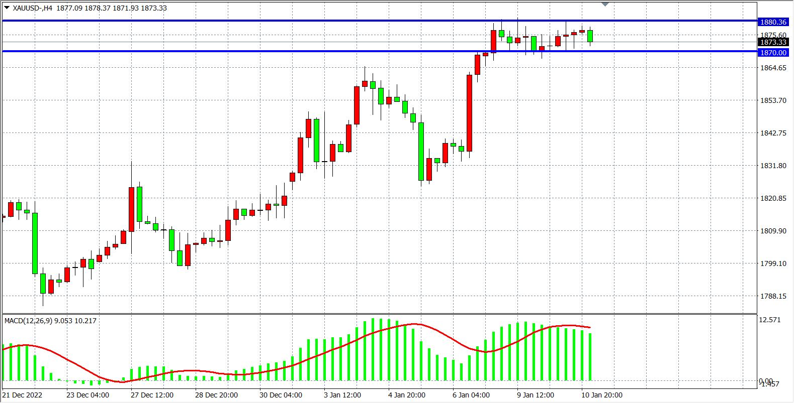 周二(1月10日)世行大砍今年全球经济增长预期,将2023年全球经济增长预期从去年6月份的增长3.0%下调至增长1.7%,这是近30年来第三低的增速,并警告称三年内第二次衰退或至。现货黄金继续维持震荡,并受1880美元大关牵制,最终小幅收涨0.31%。本周美国通胀水平成为主要焦点,若12月份的CPI报告进一步回落为通胀降温,金价有望保持上攻态势。