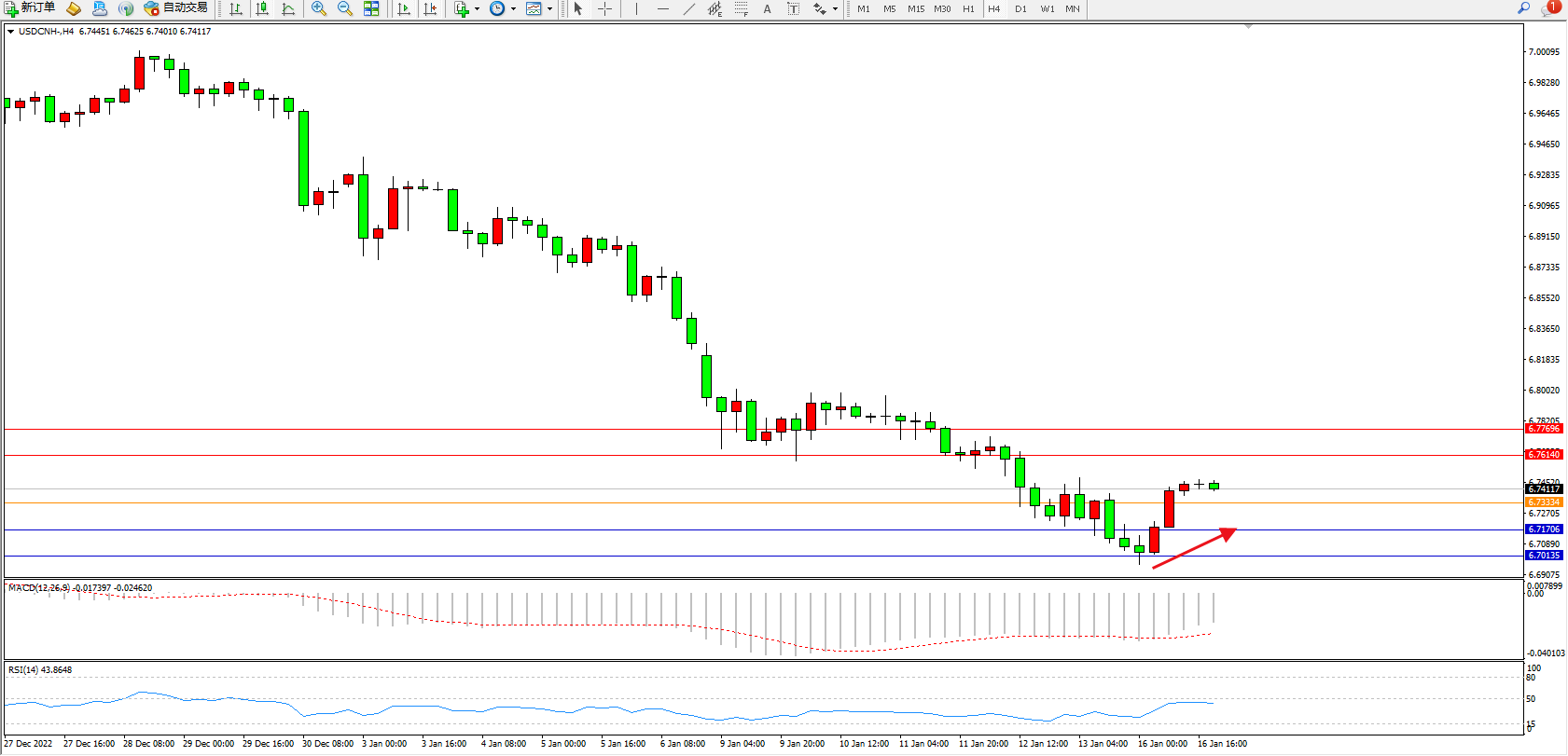 交易策略:6.73334上方看涨,目标6.76140、6.77696