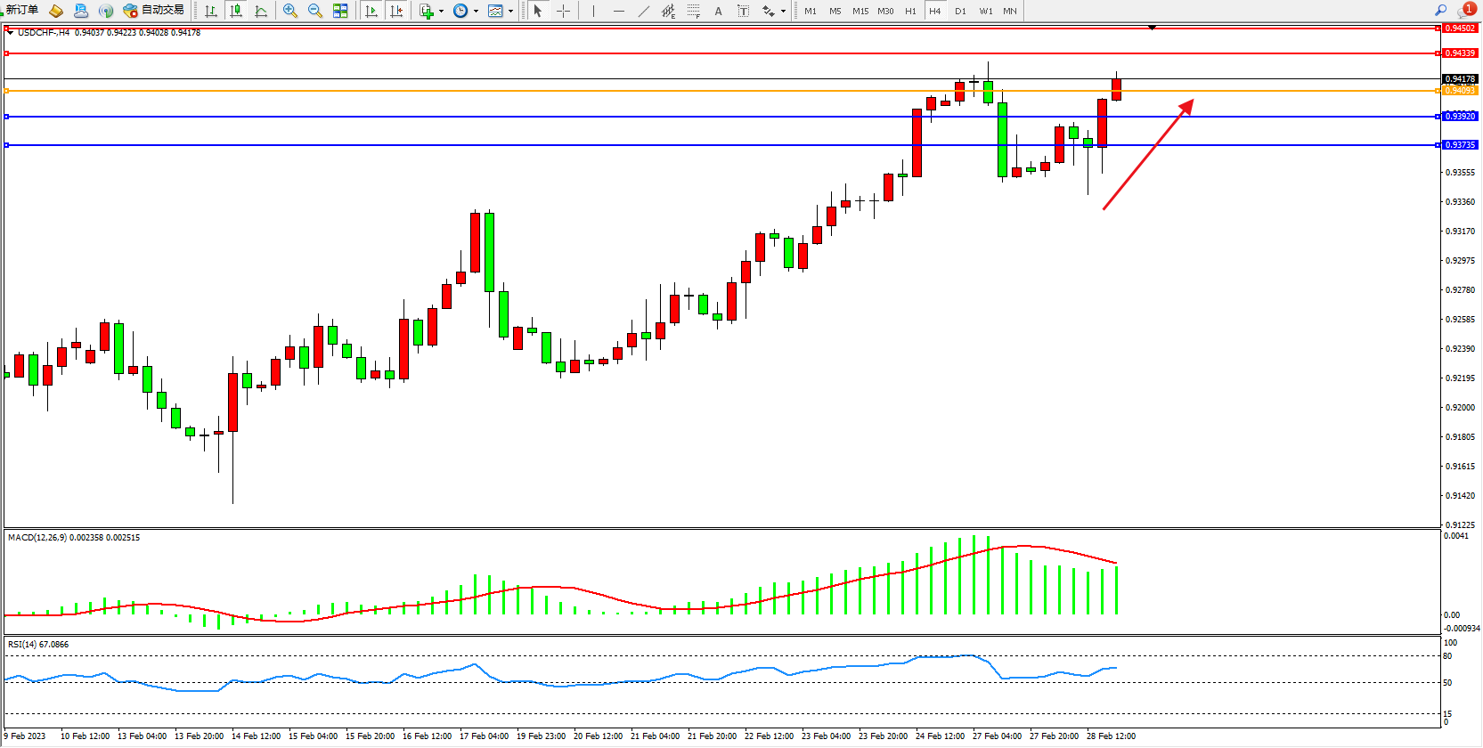 备选策略:0.94093下方看跌,目标0.93920、0.93735