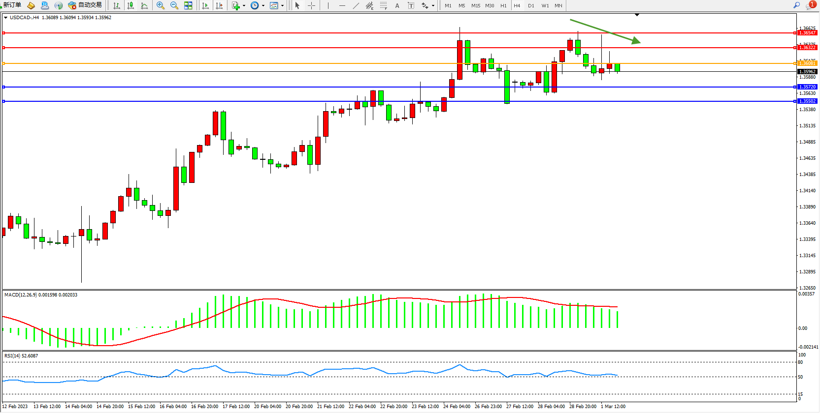 交易策略:1.36081下方看跌,目标1.35720、1.35502