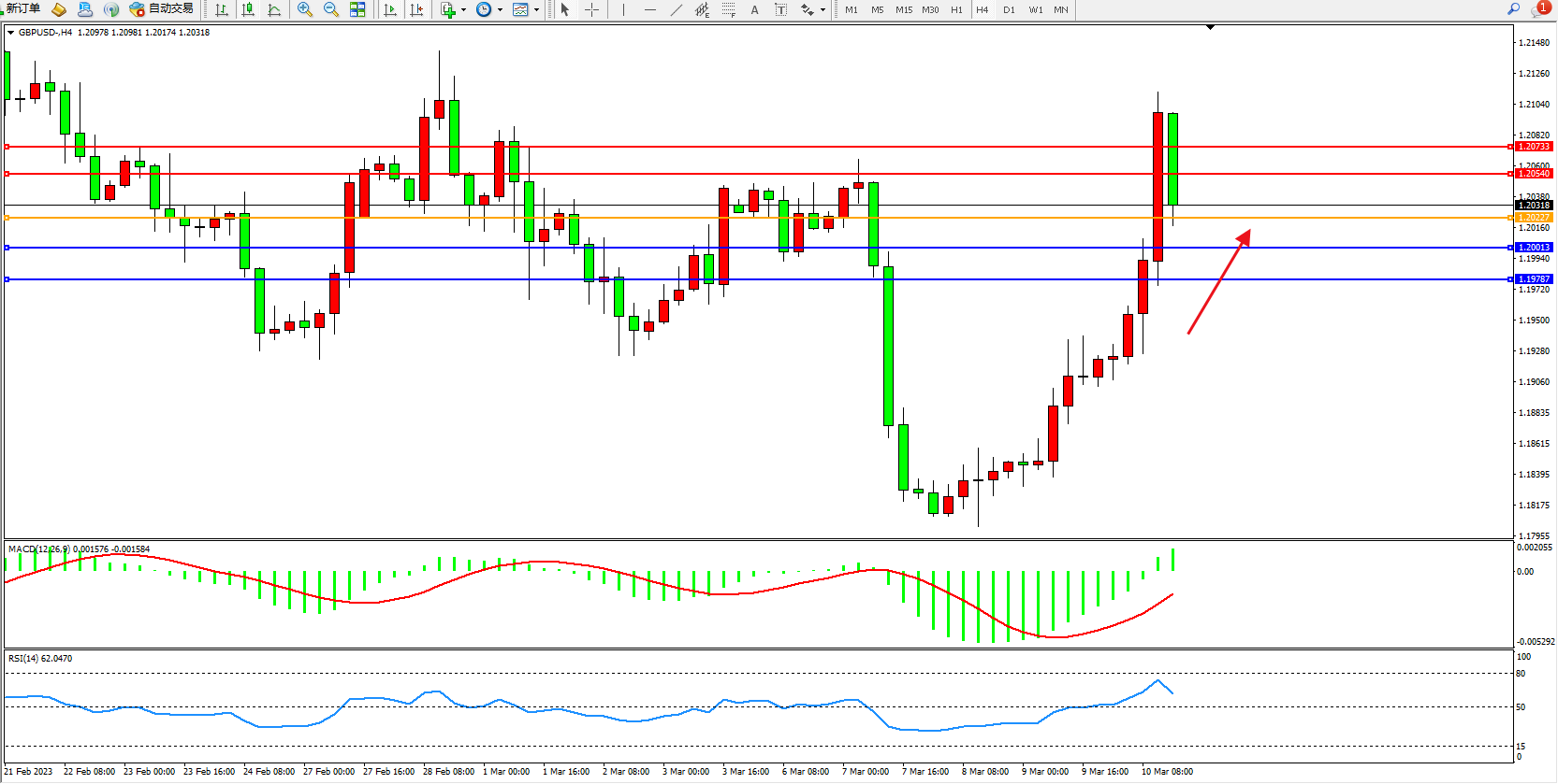 交易策略:1.20227上方看涨,目标1.20540  1.20733