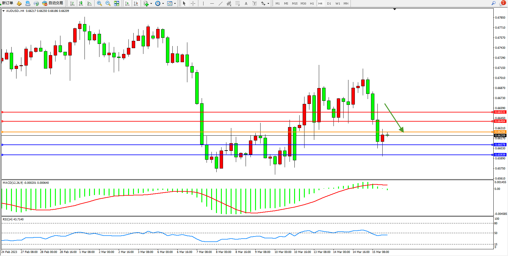 阻力位:0.66404 0.66531