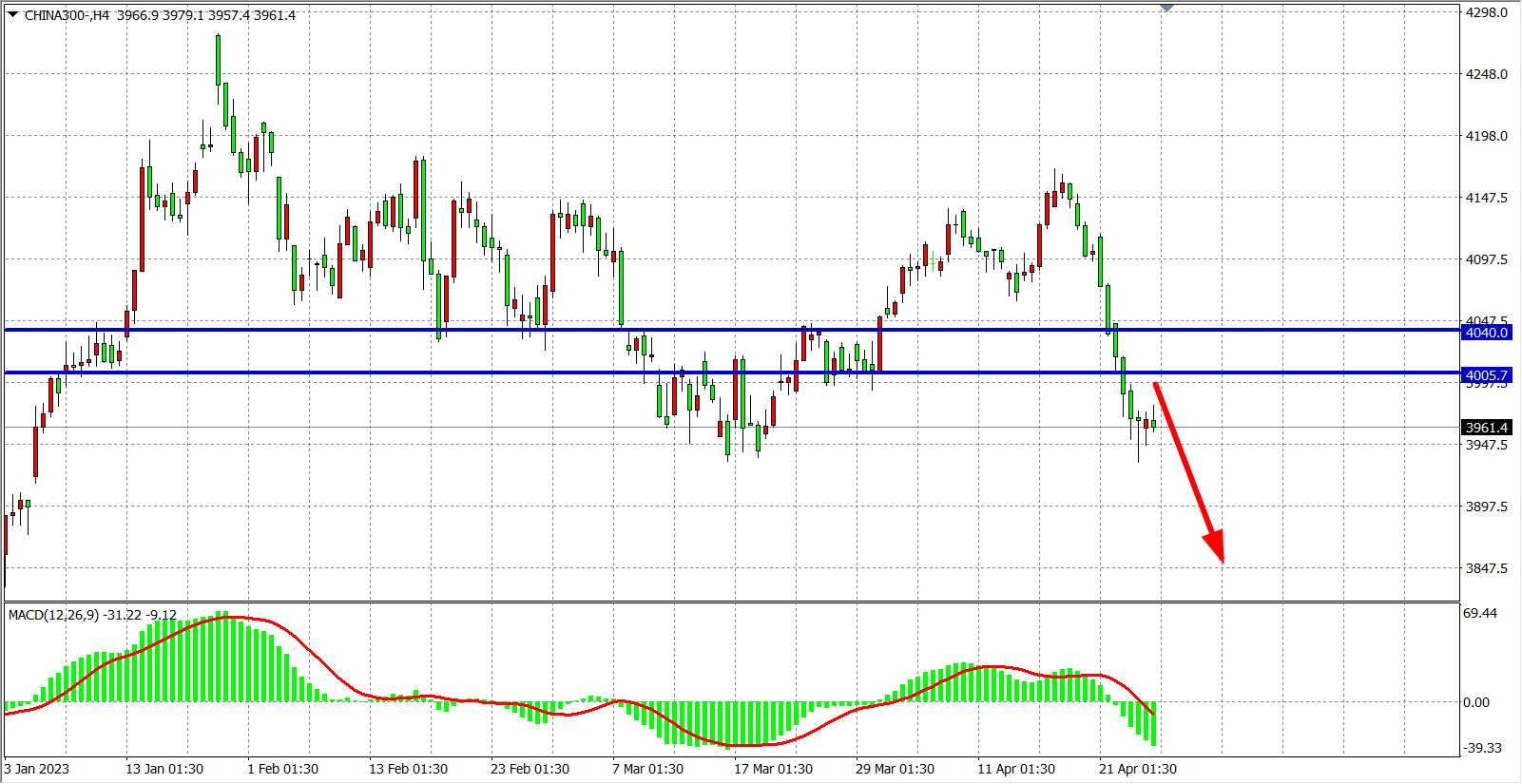 交易策略:4005 下方看跌,目标 3950 3900