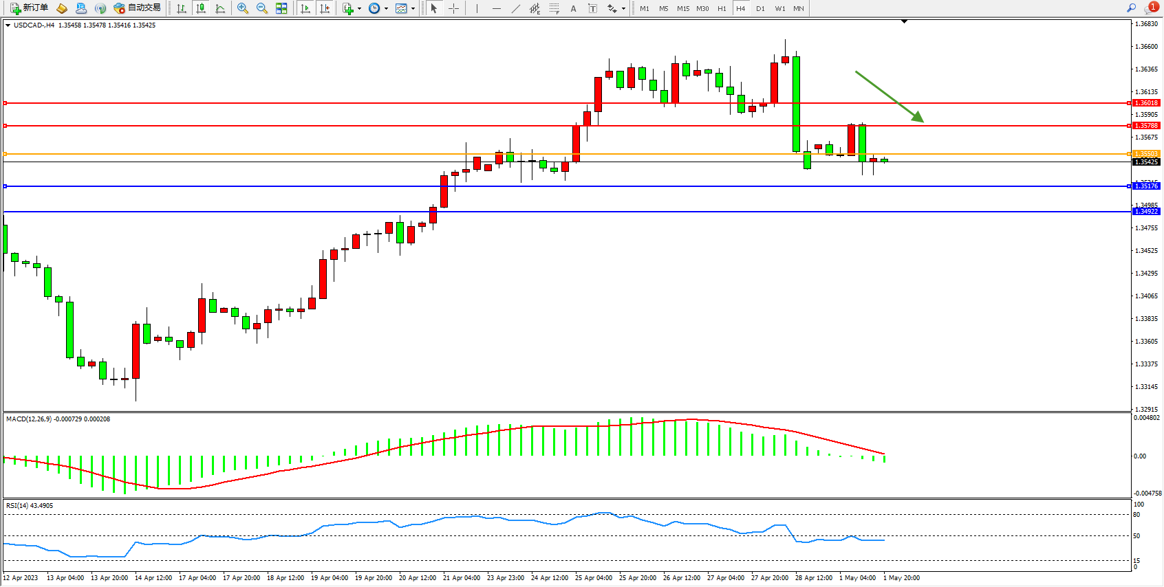 交易策略:1.35503下方看跌,目标1.35176  1.34922