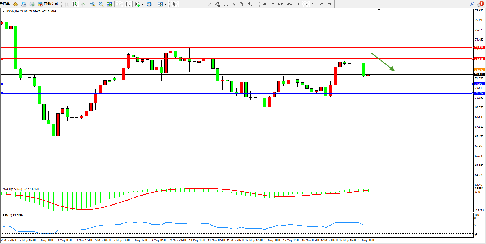 交易策略:72.149下方看跌,目标71.095 70.392