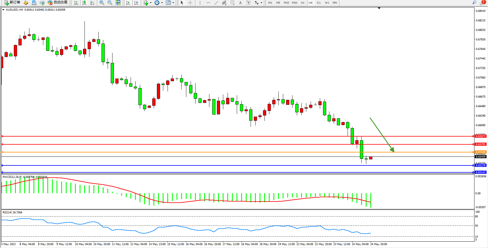 交易策略:0.65548下方看跌,目标0.65278  0.65143