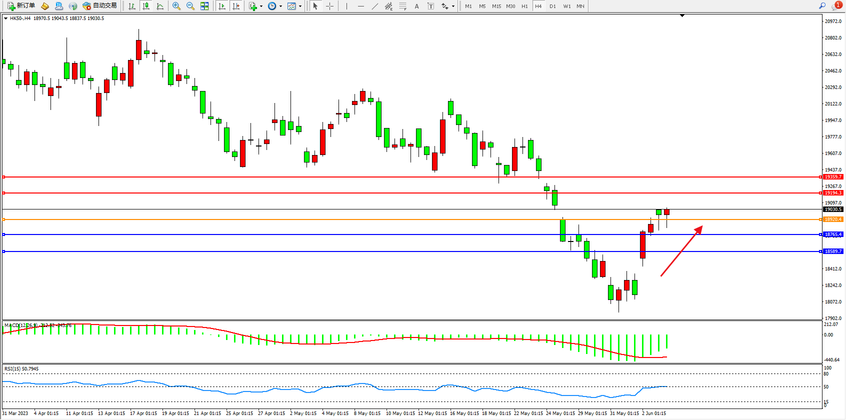 恒指HK50 4小时图