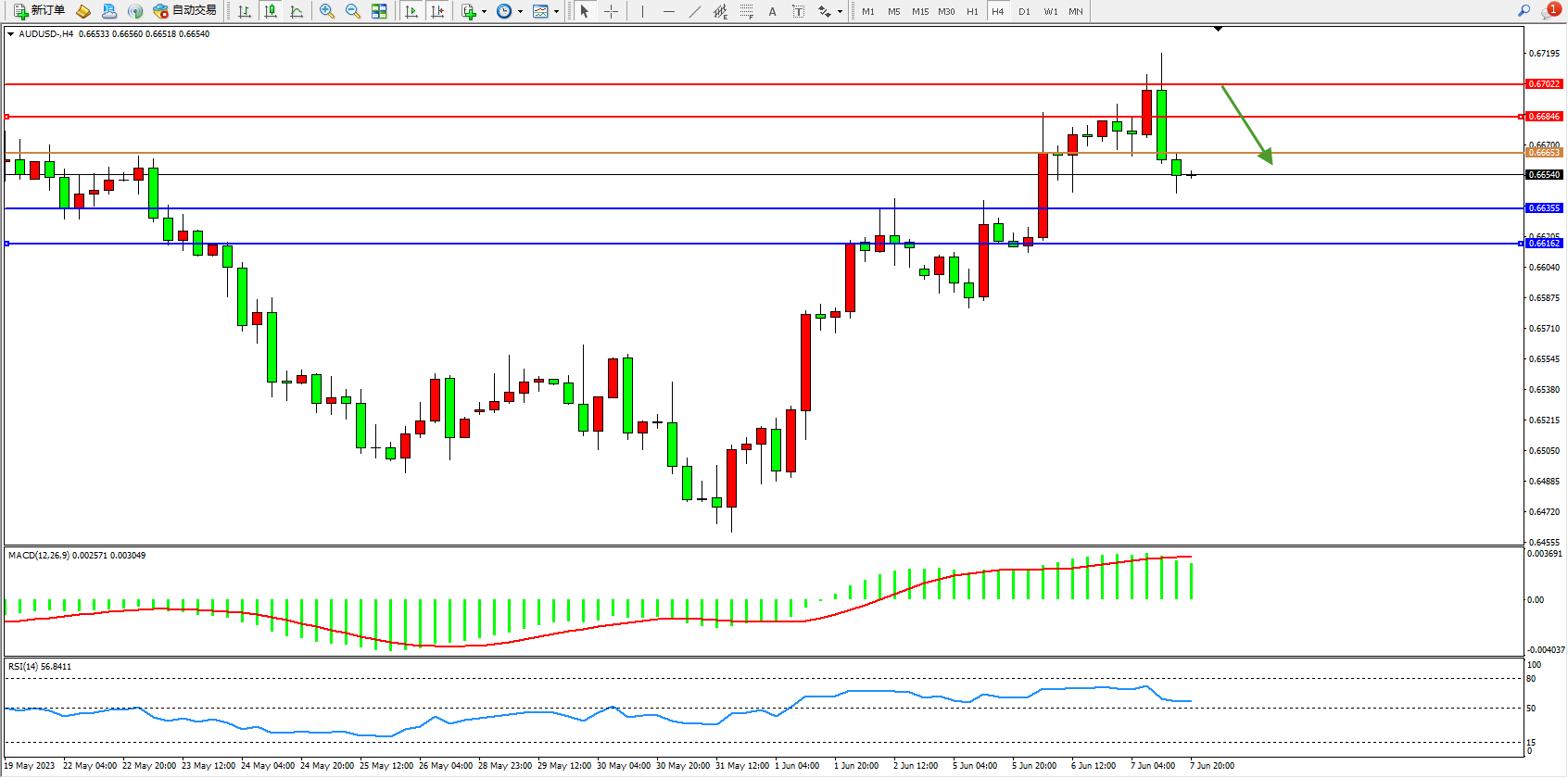 阻力位:0.66846 0.67022