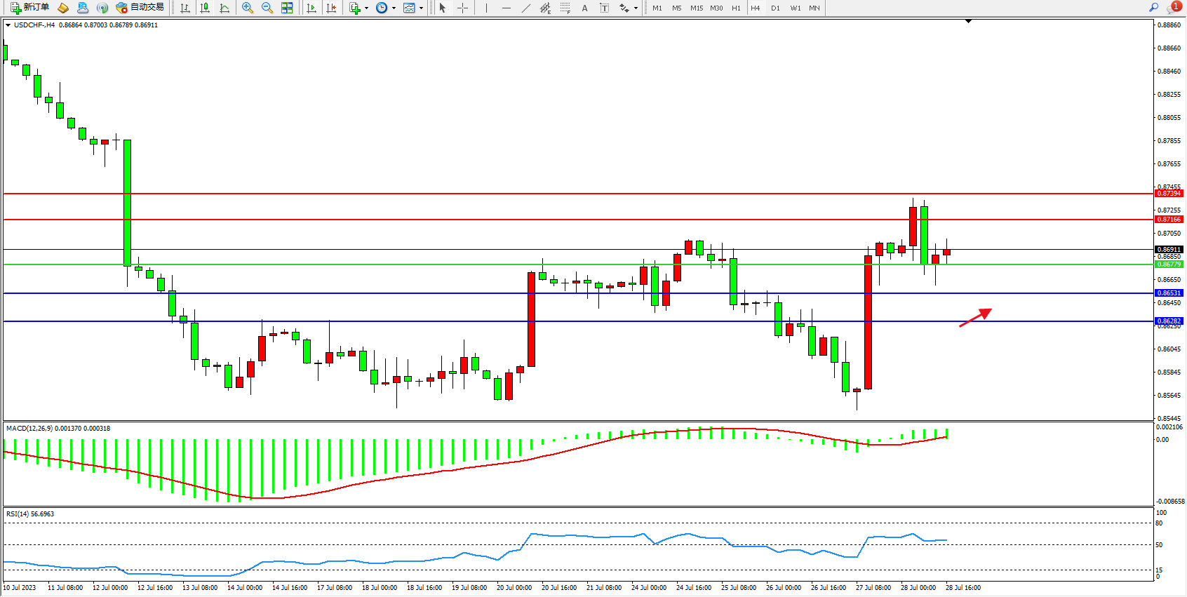 备选策略:0.86779下方看跌,目标0.86531 0.86282