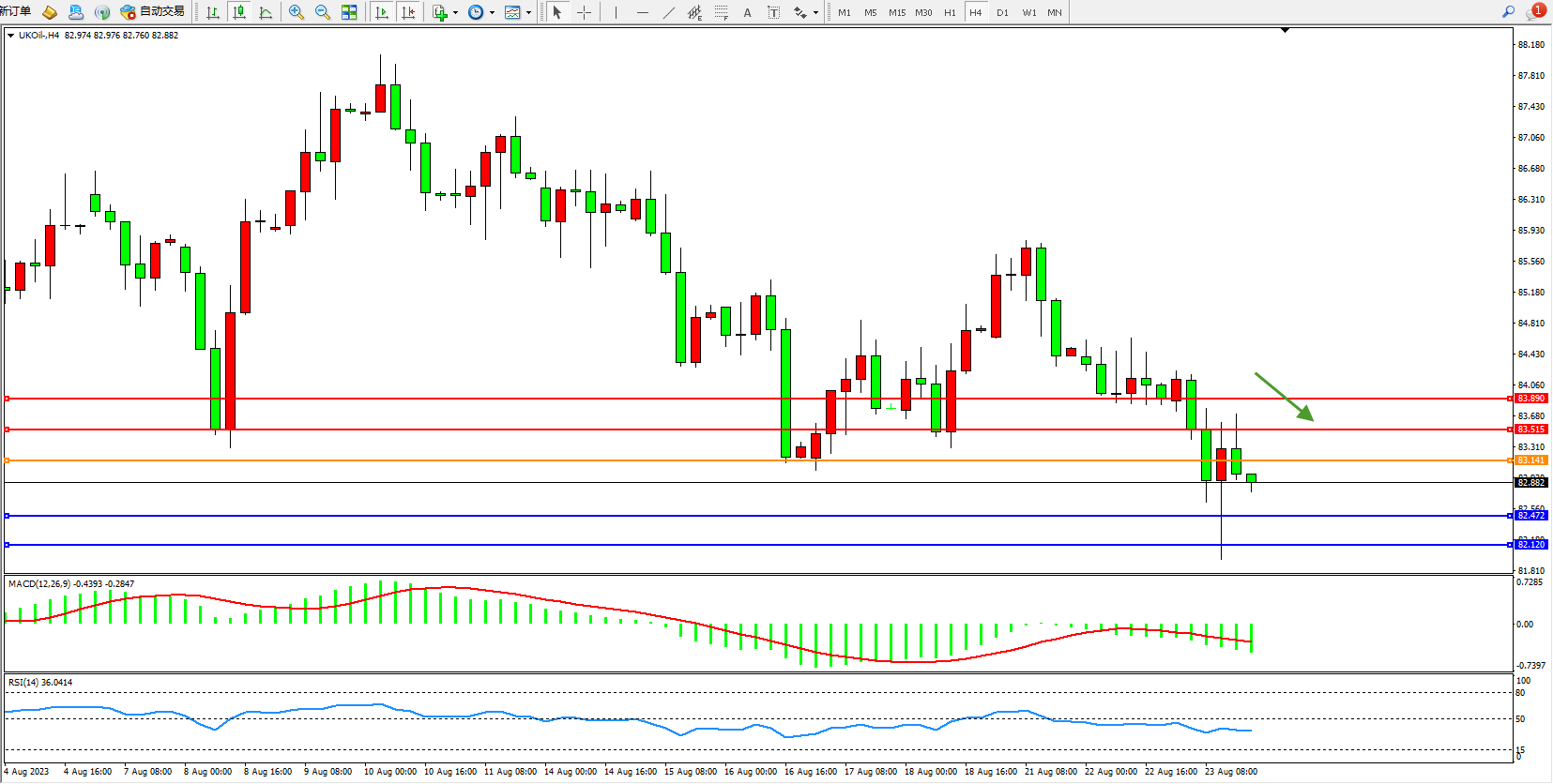 4小时图看:空头动力维持震荡向下移动,短期跌势或将持续,市场空头情绪笼罩,MACD指标处于空头区域整理,RSI指标处于50均衡线下侧徘徊;