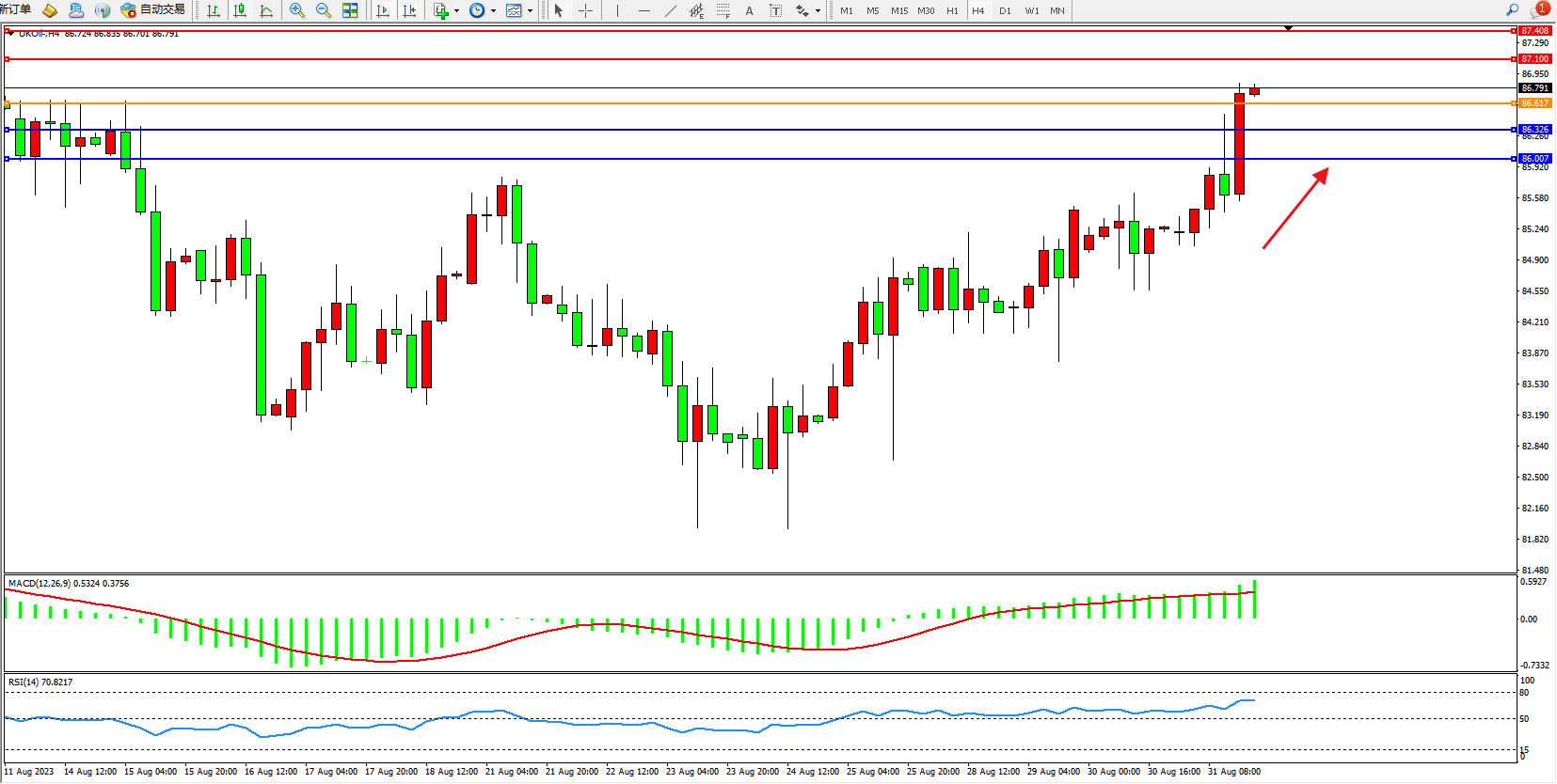 布油维持86.791附近震荡,若沙特将减产计划再延长一个月,布伦特原油价格可能接近90美元/桶。预计沙特将在几天内宣布其10月份的减产计划。100万桶/天的减产计划已经持续了两个月,沙特已经表示将把减产计划延长到9月份