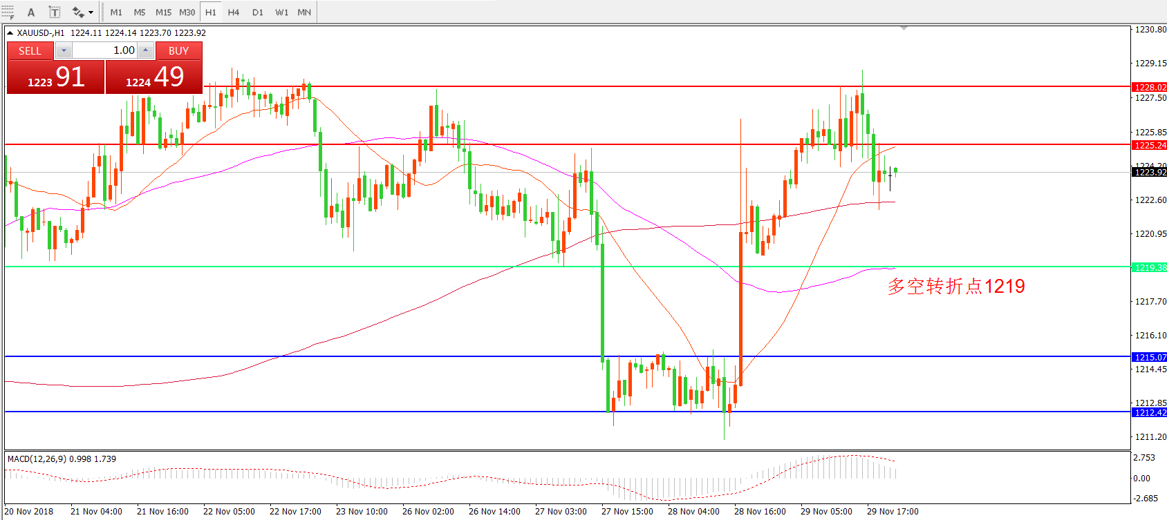 交易策略:在1219之上看涨,目标1225.02 1228.24