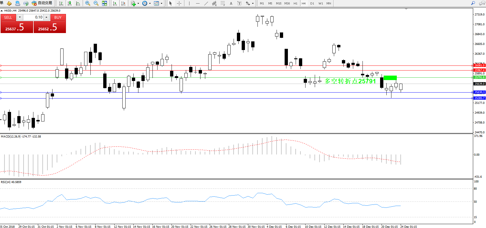 恒指HK50 ——4小时K线图显示: