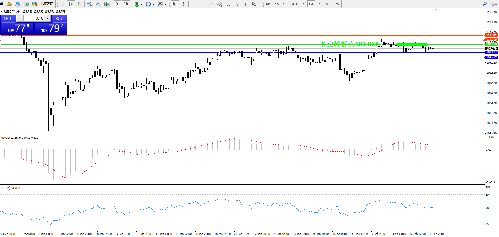 交易策略:109.938下方看跌,目标109.622109.417