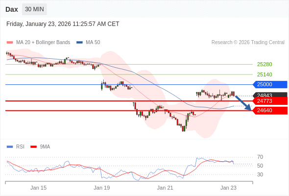 德国DAX指数 当日内: 短期关键阻力位在25000。