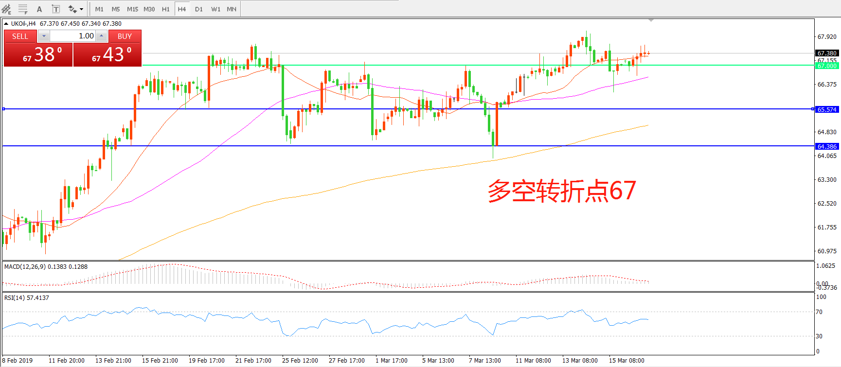 多空转折点:67.00