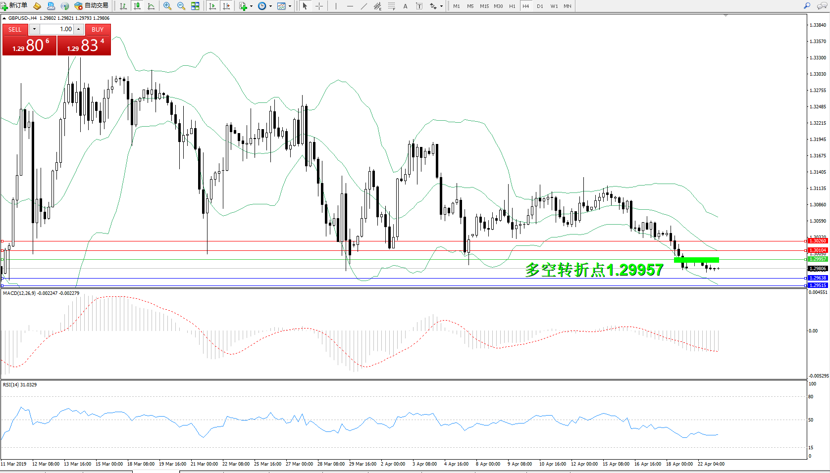 交易策略:1.29957下方看跌,目标1.39638、1.39515