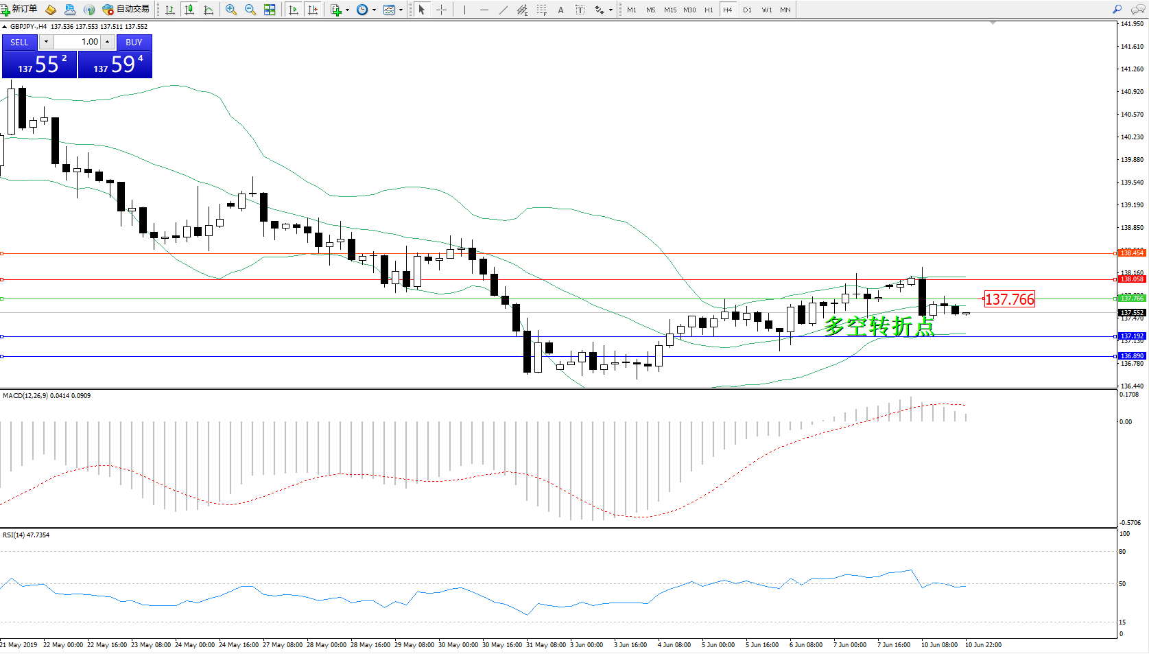交易策略:137.766下方看跌,目标137.192、136.890