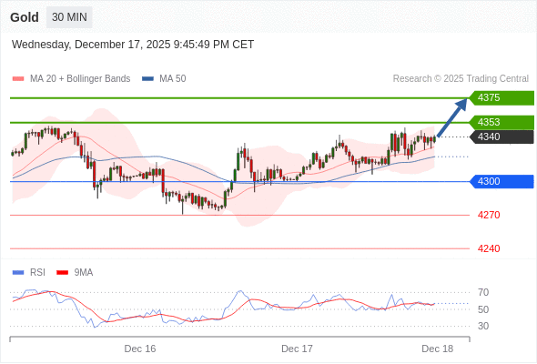交易策略: 在 4300 之上,看涨,目标价位为 4353 ,然后为 4375 。