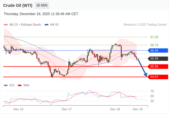 在 56.45 之下,看跌,目标价位为 55.55 ,然后为 54.97 。