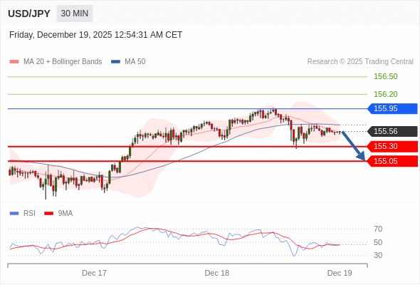 在 155.95 之下,看跌,目标价位为 155.30 ,然后为 155.05 。