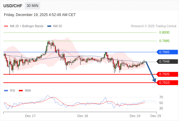 在 0.7965 之下,看跌,目标价位为 0.7925 ,然后为 0.7910 。
