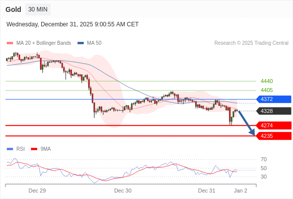 在 4372 之下,看跌,目标价位为 4274 ,然后为 4235 。