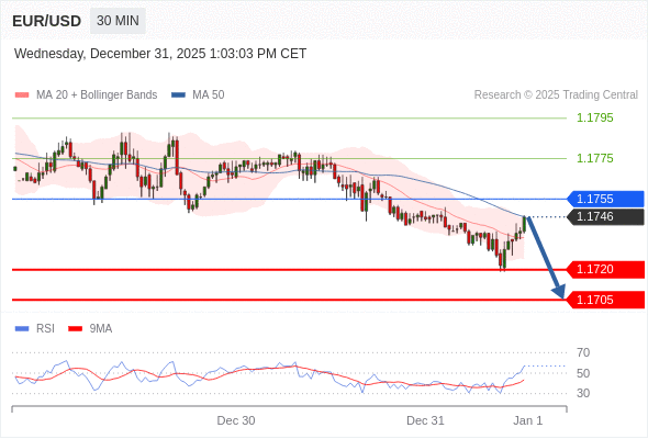 在 1.1755 之下,看跌,目标价位为 1.1720 ,然后为 1.1705 。