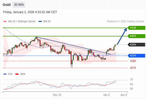 在 4324 之上,看涨,目标价位为 4404 ,然后为 4438 。