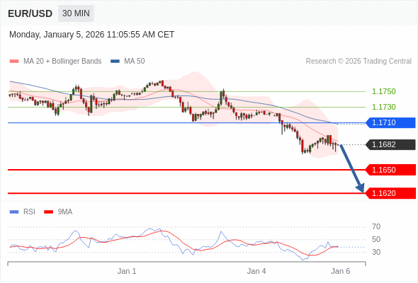 交易策略: 在 1.1710 之下,看跌,目标价位为 1.1640 ,然后为 1.1620 。
