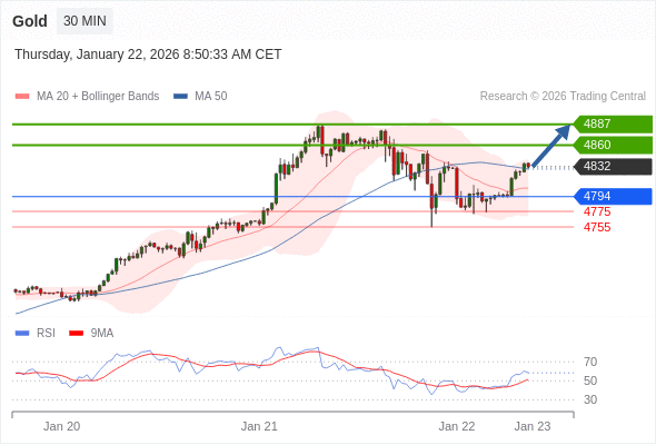 在 4794 之上,看涨,目标价位为 4860 ,然后为 4887 。