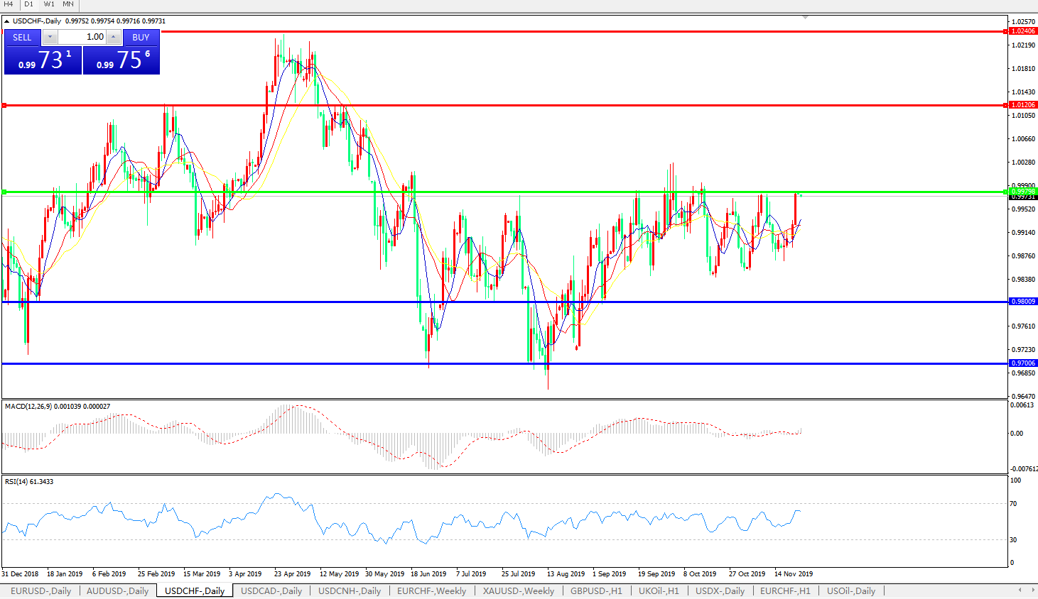美元兑瑞郎USDCHF 日线图:
