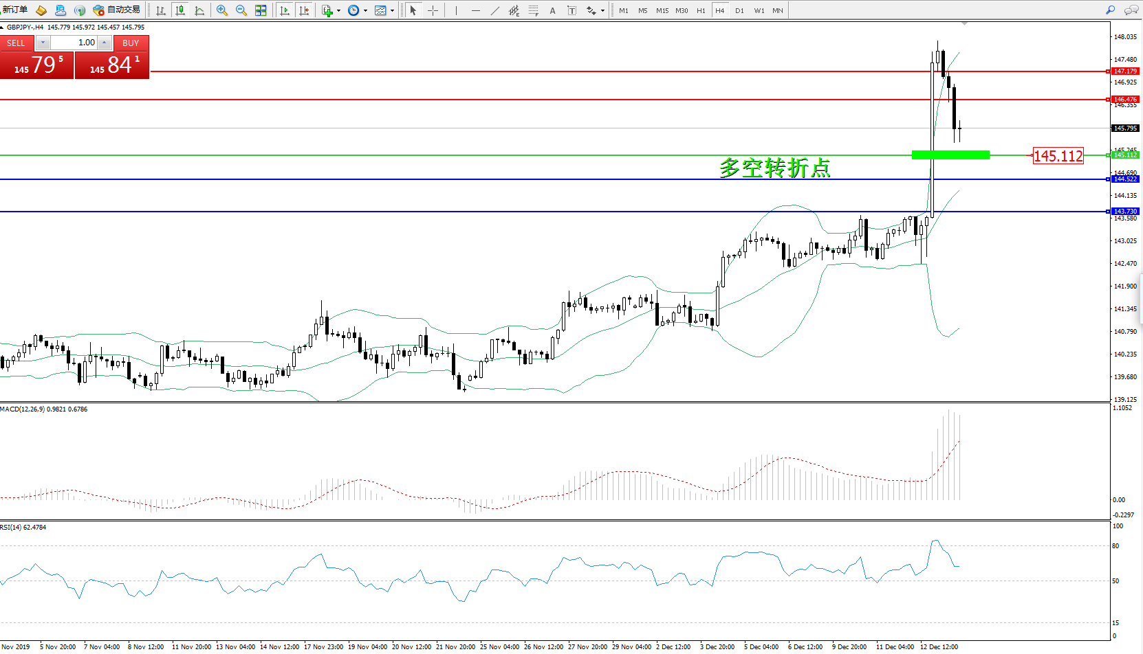 交易策略:145.112上方看涨,目标146.476、147.179