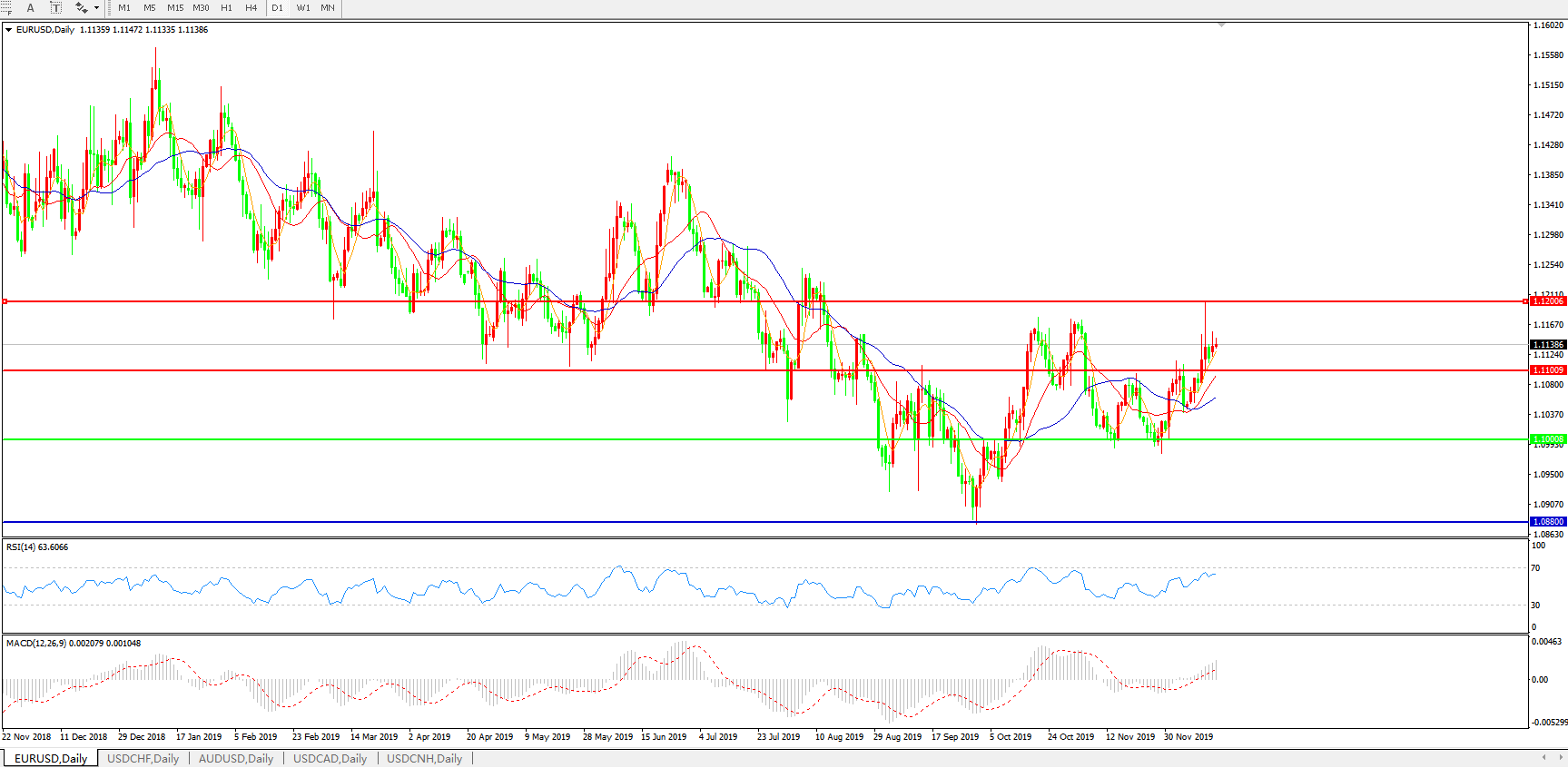 欧元兑美元EURUSD 日线图: