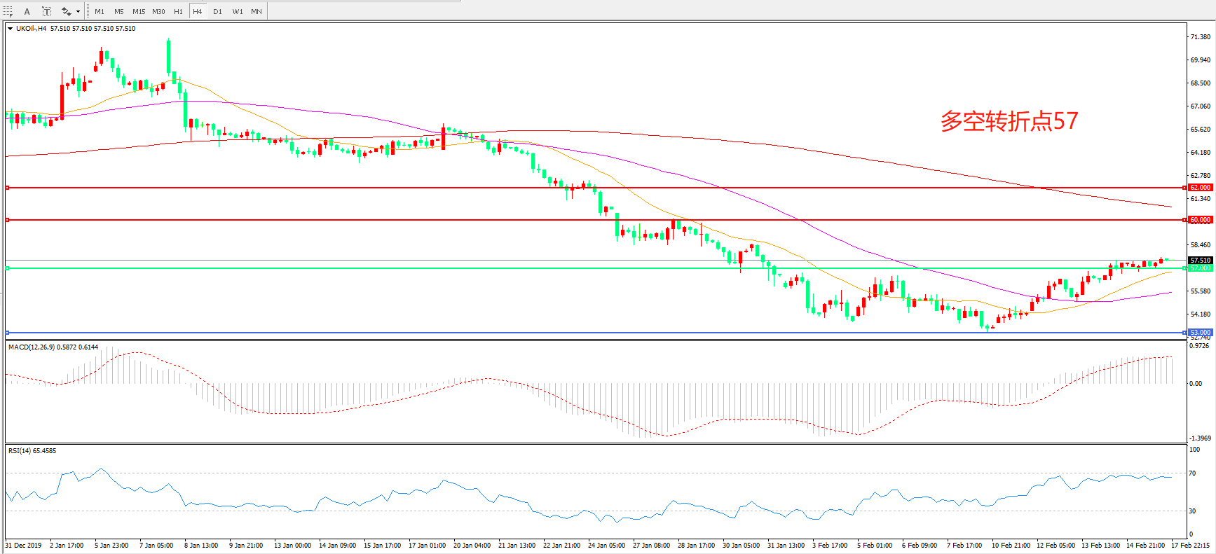 交易策略:在57.00之上看涨,目标60.00    62.00