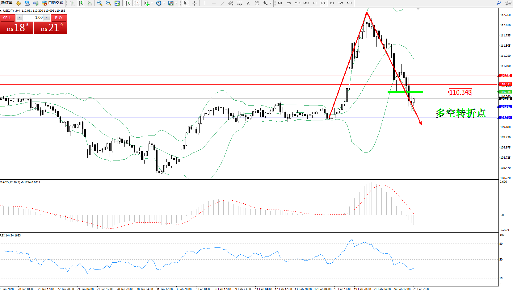 交易策略:110.348下方看跌,目标109.981109.714