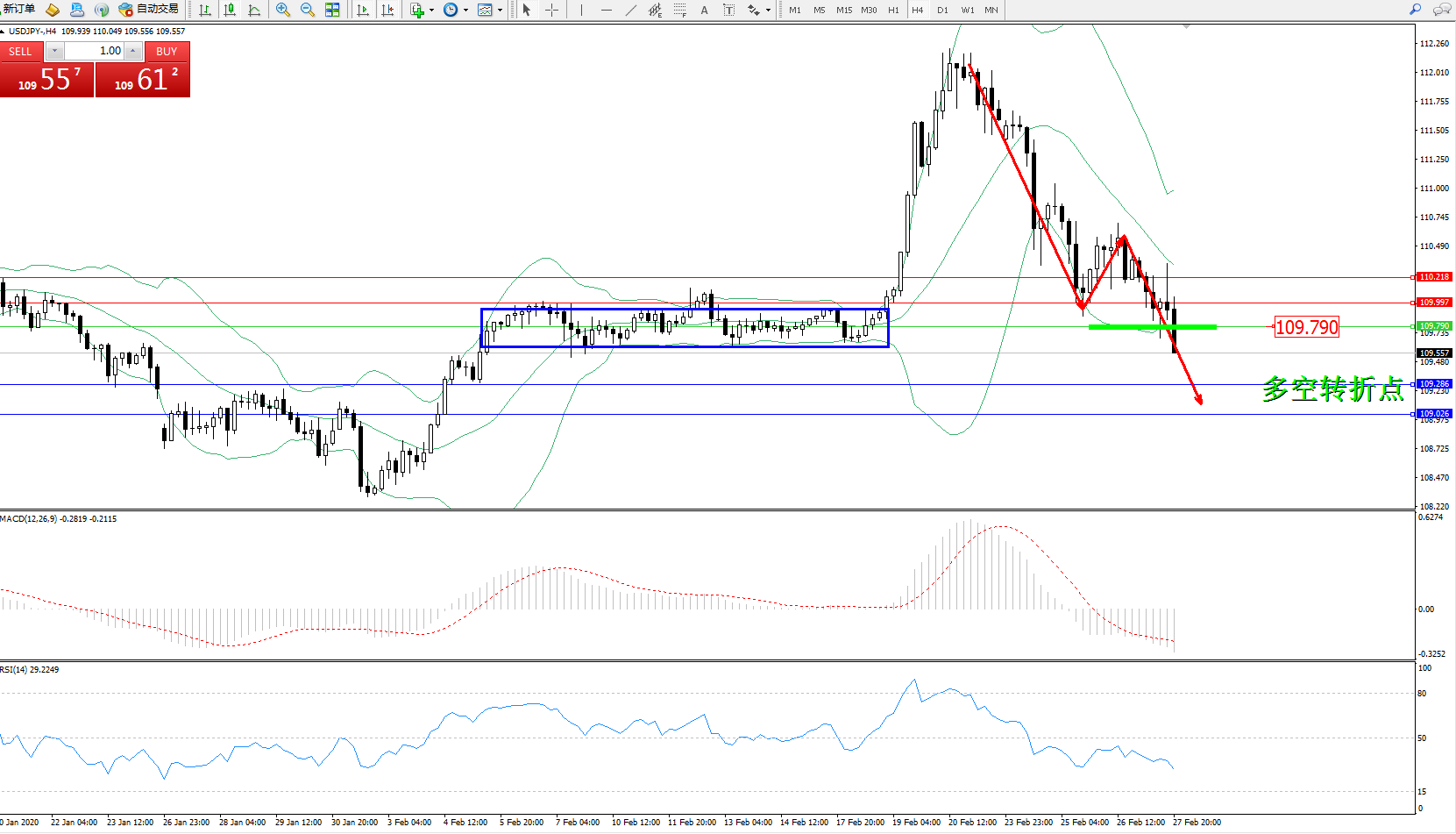 交易策略:109..790下方看跌,目标109.286、109.026