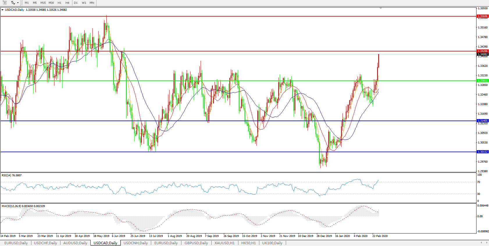 美元兑加元USDCAD 日线图: