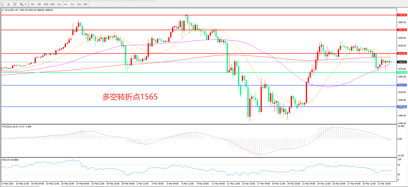 备选策略:在1565.00之下看跌,目标1535.00   1485.00