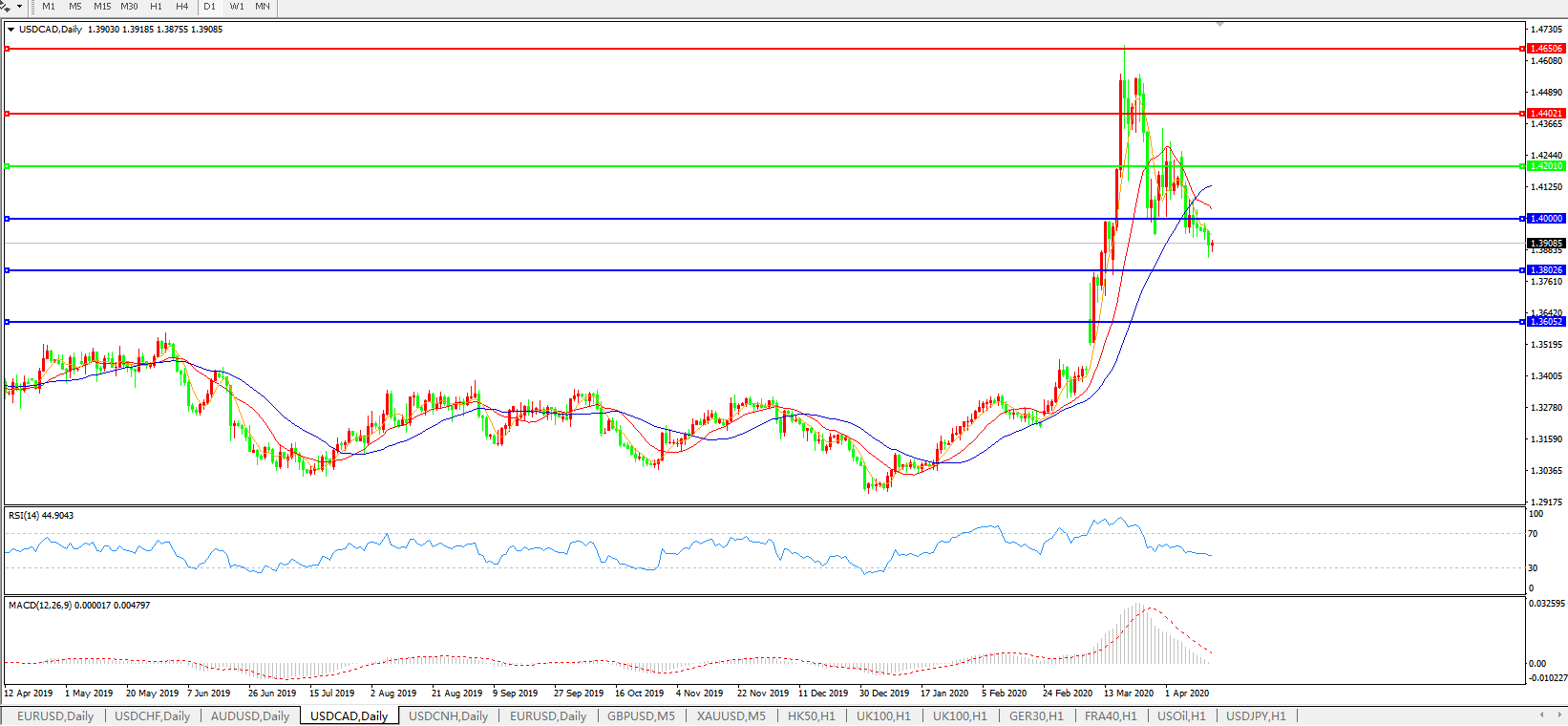 交易策略: 在1.4200之下,看跌,目标价位为1.4000、1.3800